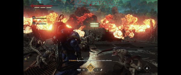 Combat is, honestly, fantastic. You’ll be placed in front of endless hordes of tyranids and chaos, given as many bolts as you can carry and let loose to decimate them. You’ll quickly figure out which weapons suit your playstyle the best and for the campaign that ended up being a mid-range all-rounder for me. The co-op is a completely different matter though as you have a much larger selection of weapons and abilities to choose from and, should you have a crew you play with, selecting complementary equipment and skills is almost a necessity. Whilst you’ll never become the unstoppable killing machine that you were back in the original it is a far more interactive experience, requiring much more of you as a player. That doesn’t take away from the power fantasy though as a well executed parry into dodge roll then bolting an extremis right in the face is a very, very satisfying thing to do.