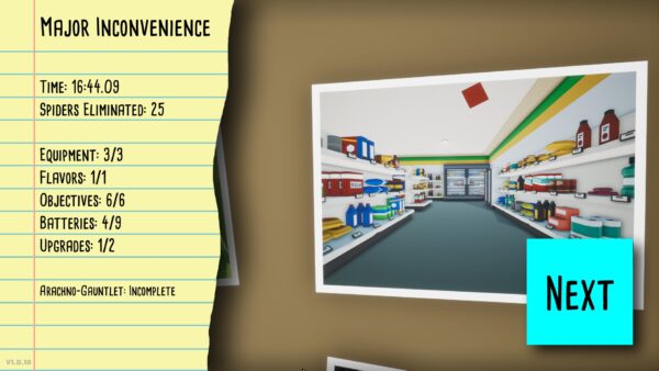 This starts out as a pretty fun game of cat and mouse, trying to figure out where all the spiders are hidden and trying to uncover them so you can get rid of them. They don’t actually pose any threat to you at all though as you don’t have a health bar and it seems nothing is able to damage you. This is quite an American way at looking at spiders given that none of the species over there are deadly to you which is not quite the case here down under (see how a Pepper Pig episode was banned in Australia for saying as much). Although I wasn’t really expecting realism from this game the fact that the spiders pose no threat means that it quickly becomes more of a chore to chase them down rather than a tense/suspenseful experience I had thought it might be going in.