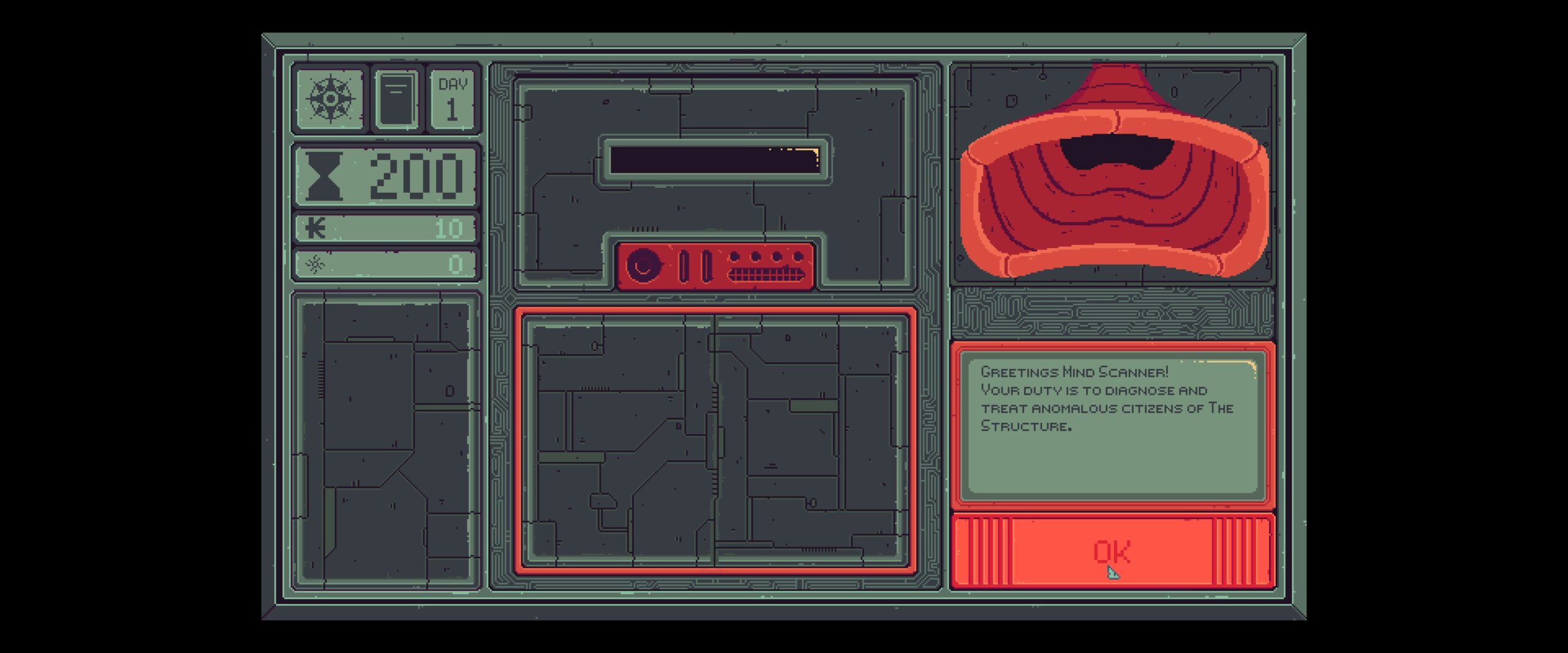 You are a good citizen of The Structure, a bastion of humanity where a meteor brought with it the knowledge of a new technology that accelerated humanity’s development significantly. Unfortunately your daughter has been identified as needing treatment, her personality displaying some troubling signs that will need rectification by some of the most trained and skilled Mind Scanners that The Structure has available. If you want to see her again you must join their ranks as only a level 3 citizen is able to access the sacred halls where she’s receiving her treatment. This journey will introduce you to the various different citizens of the structure and make you question what it really means to be sane here.