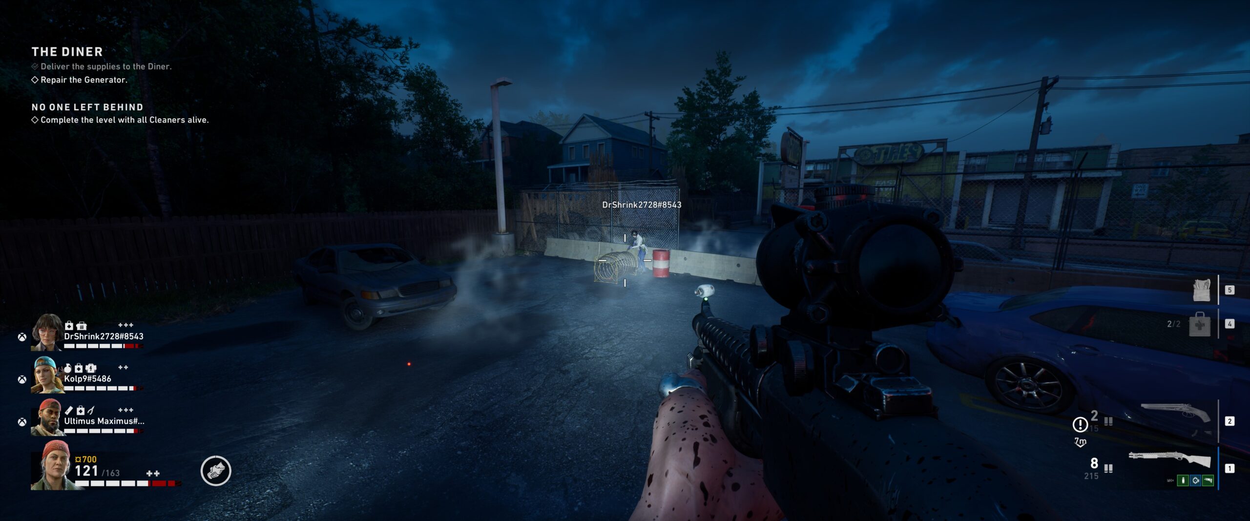 The mechanical creep in these co-op survival shooter games isn’t something that’s gone unnoticed, especially with games like Vermintide introducing looting, crafting and all sorts of other things into the mix. Back 4 Blood then feels like the pinnacle of mechanical complexity as it incorporates pretty much every trope we’ve seen over the past decade. You’ve got your base character classes, each of which have a signature ability, innate perk and special secondary weapon that’ll form the bedrock of your build. Layered on top of that is the card system which allows you to customise your build further, constructing a deck that you will be able to draw a card from at the start of each round to buff your character further. Then there’s the looting system with the standard weapon archetypes we’ve come to expect but we’ve also now got a quality system for both the guns and their augments as well. On top of that all the levels can roll with different modifiers, making some levels trivial and others damn near impossible. Mix in a couple different modes (which have different cards available to them) and you’ve got a massive kitchen sink of mechanics that, on paper, make the game an infinitely replayable smorgasbord. In practice though many of those get ignored or misused as what people were really looking for in these kinds of games was more of the same. There is of course enjoyment to be had in min-maxing out a build during a run, but I feel like I was in the minority of my group when I was doing that.