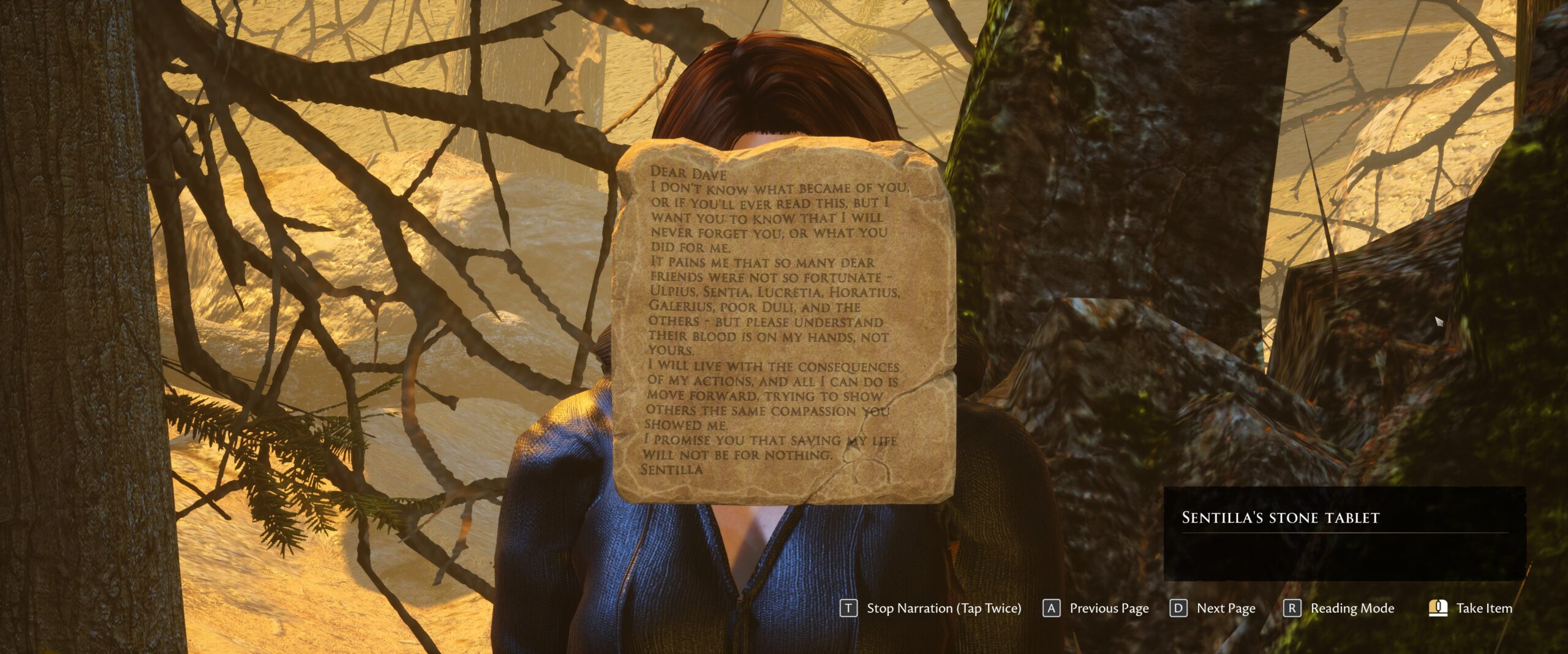 I was initially taken aback by The Forgotten City’s decidedly dated visuals and the uncanny resemblance it had to the Skyrim’s style of dialogue (I.E. zooming right up to the character’s face whilst you make decisions between a couple text options). As it turns out this is not accidental as the game is the recreation of a Skyrim mod that the main developer had made and released back in 2015. Whilst this is something of a distraction for the game’s opening hour or so the visuals matter less and less as the game progresses on with the real focus being on the story and unravelling the secrets of the world. So whilst I’d grade it around a C- from the audio-visual aspects it’s thankfully one of the few detractions from its otherwise solid core gameplay.