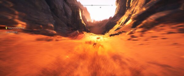Atlas Fallen has that Ubisoft aesthetic that a lot of open world games seem to adopt, one that looks great when you’re out in the open wide landscapes but rapidly loses its shine when you’re up close and personal with it. This is one of those tricks used to make the game world appear more detailed than it actually is, making the trade off for up close encounters to ensure that performance remains somewhat stable. Perhaps the most weird aspect of this is the animations which all seem a bit…off, something that’s especially noticeable in the game’s title screen. This is just the first entry in the game’s overall blandness though.